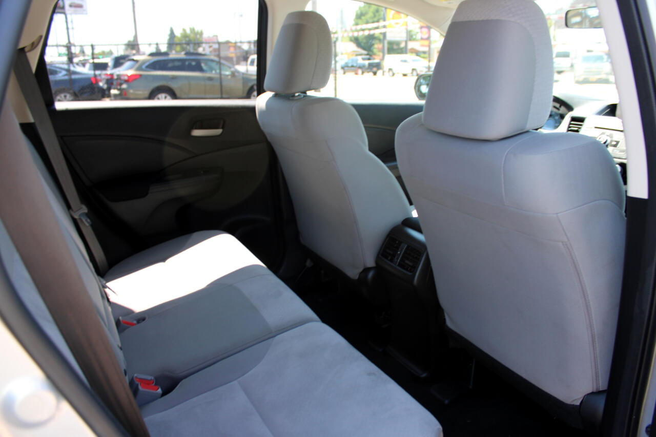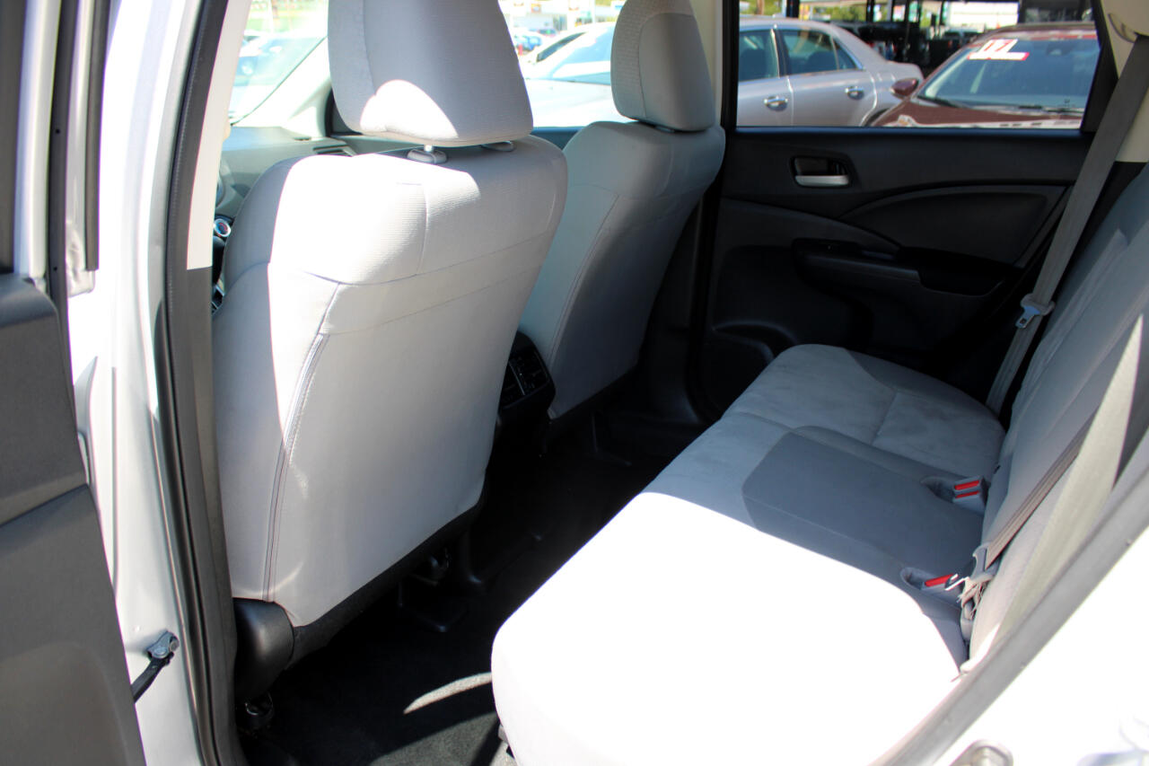 Get behind the wheel of this sleek Silver 2016 Honda CR-V and experience the thrill of the 2.4L I-4 engine paired with the Continuously Variable transmission with Sport Mode. This reliable vehicle is built to conquer any terrain with the automatic full-time all-wheel drive and gas-pressurized shock absorbers. Whether you're cruising down the highway or tackling off-road adventures, the 17" alloy wheels and all-season tires will keep you rolling in style. The clearcoat paint and chrome accents give this CR-V a polished look that will turn heads wherever you go. Step inside and enjoy the comfortable front bucket seats and convenient Bluetooth Hands freelink wireless phone connectivity. With a Carfax report available, you can buy with confidence knowing the history of this well-maintained vehicle. Don't miss out on this incredible opportunity to own a versatile and dependable SUV that's ready for all of life's adventures.